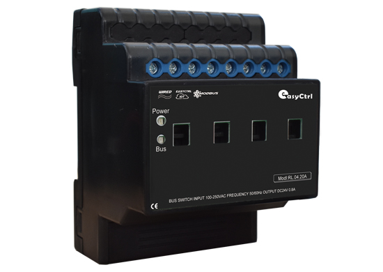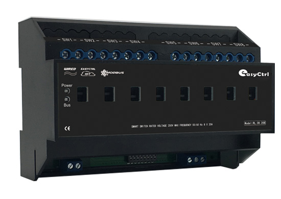 智能開關控制模塊在YC-BUS總線通訊協議管理下,多數采用繼電器控制方式,按一個模塊控制的開關回路數計,主要有4路、6路、8路、12路等。